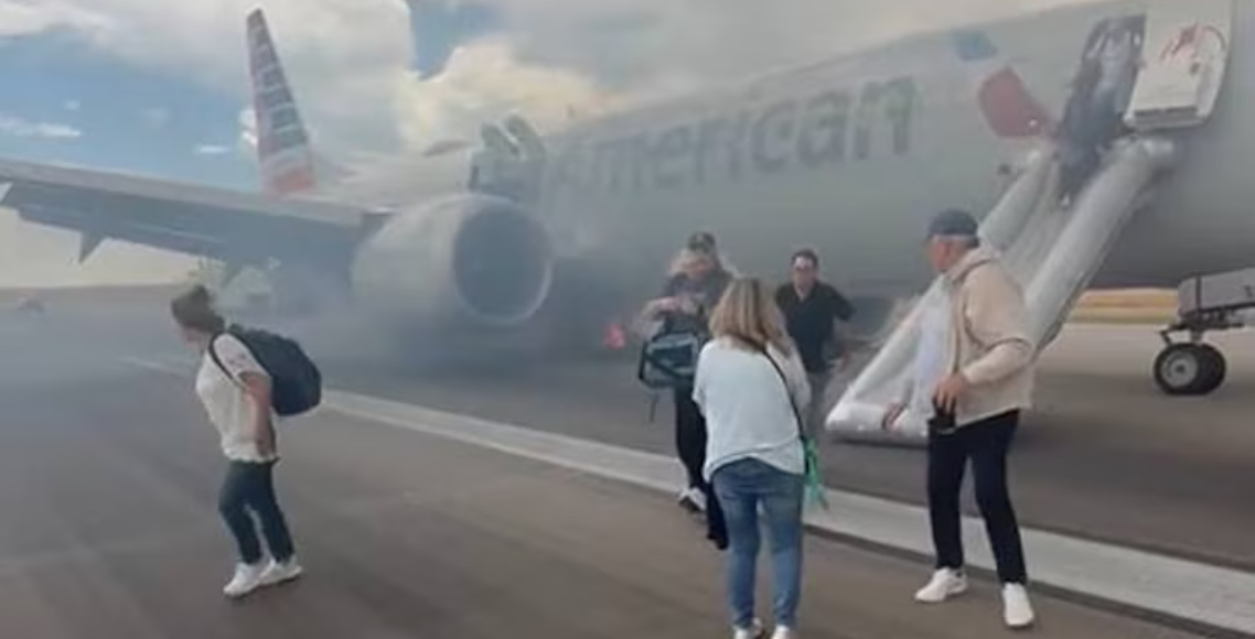 अमेरिकामा उड्न लागेको विमानमा अचानक आगो सल्किएपछि यात्रुको भागाभाग (भिडिओ)