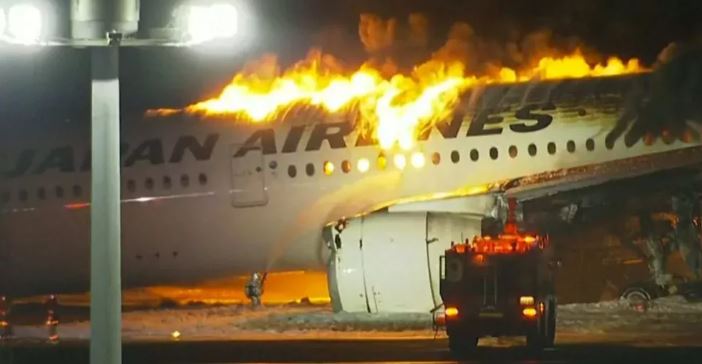जापान एयरलाइन्सको विमान अवतरणका क्रममा अर्को विमानसँग ठोक्किदा भीषण आगलागी