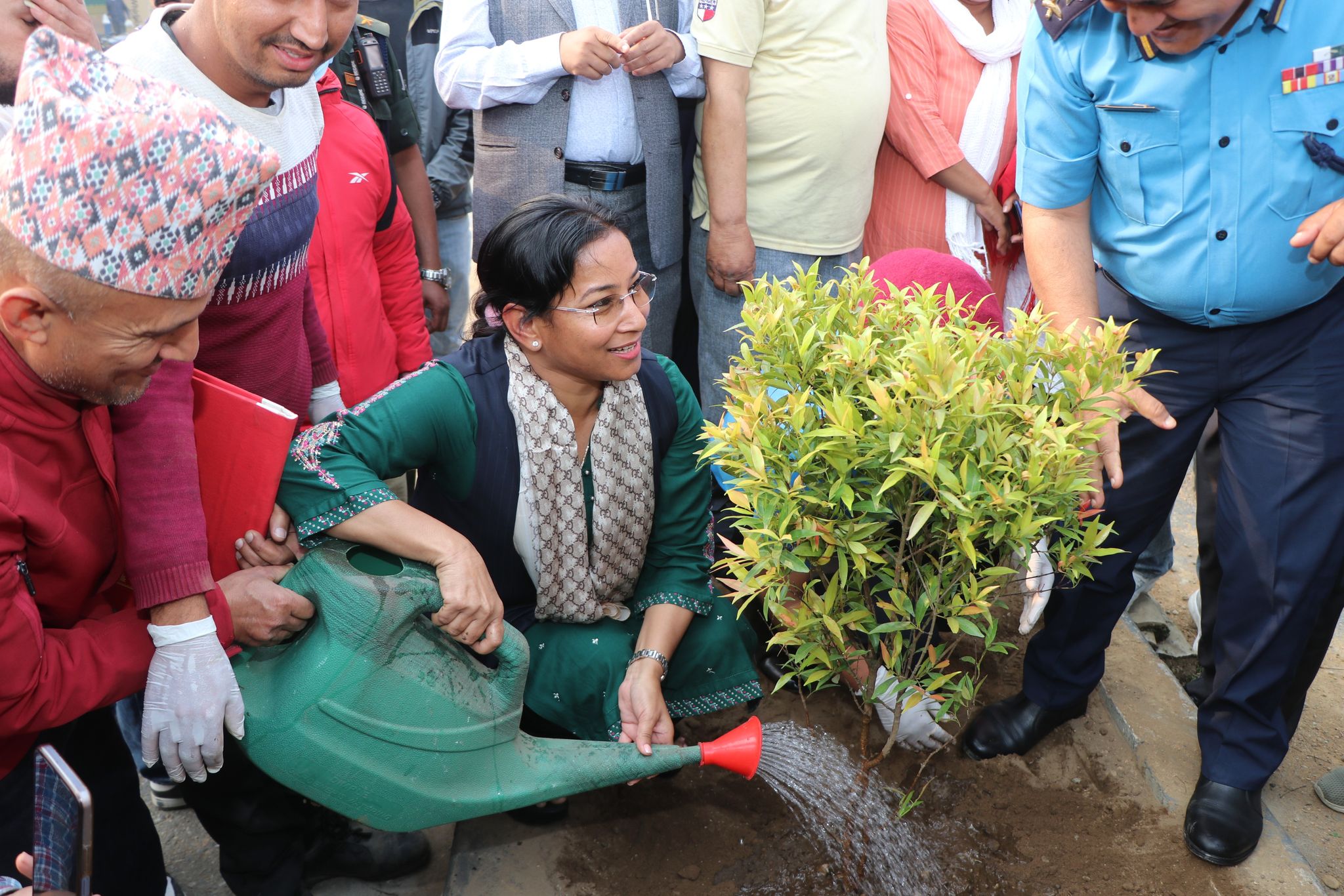 भरतपुर महानगरपालिका प्रमुख रेनु दाहालद्धारा बाईपास सडकमा वृक्षरोपण