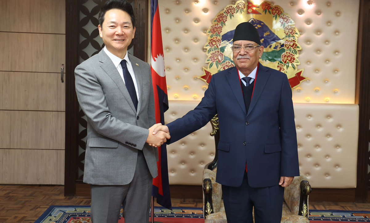 प्रधानमन्त्री प्रचण्ड र कोरियाका राष्ट्रपतिका राजनीतिक सल्लाहकारबीच शिष्टाचार भेट