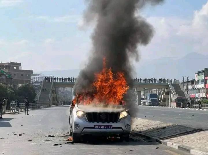 यातायात मन्त्रीको गाडीमा आगजनी