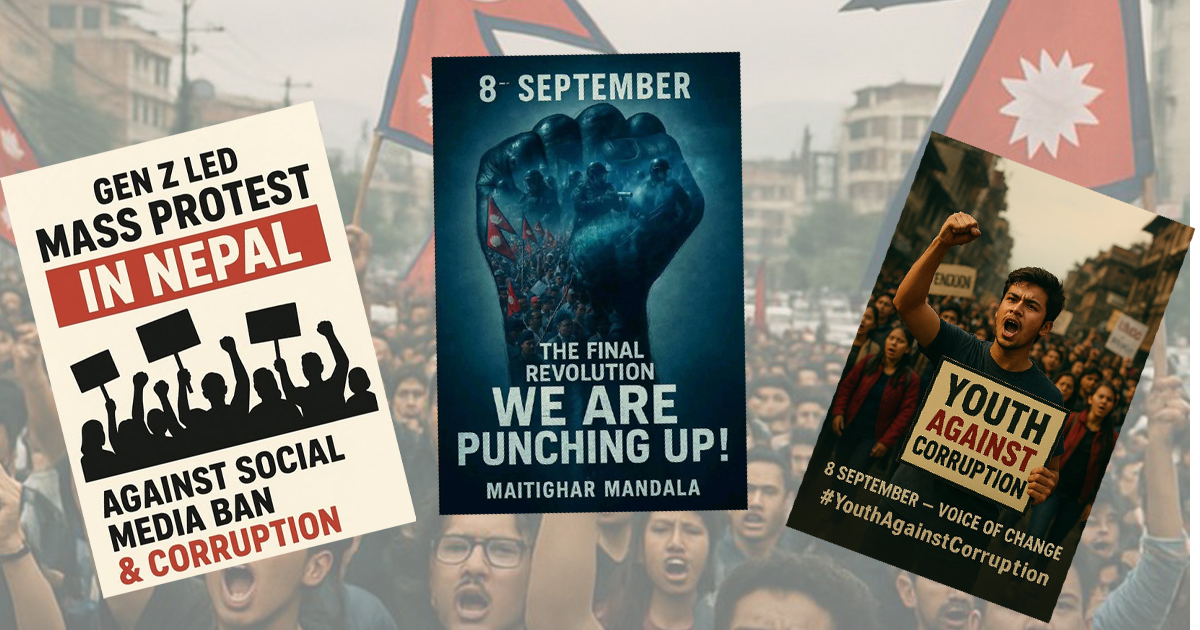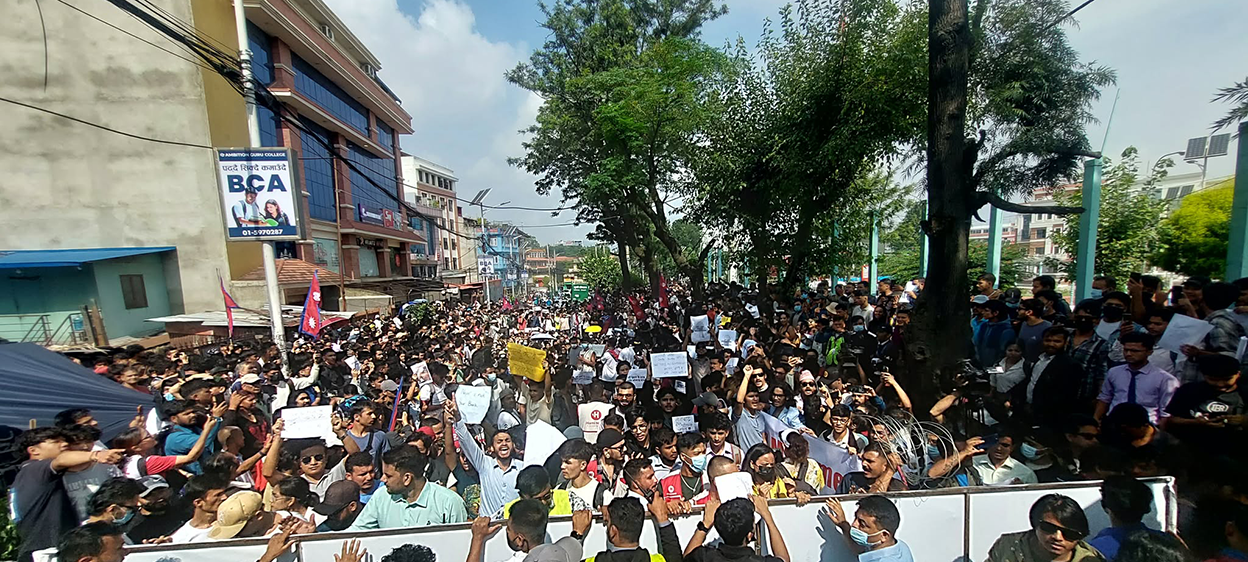 सामाजिक सञ्जाल बन्दविरुद्ध काठमाडौंको माइतीघरमा प्रदर्शन गर्दै जेनजी पुस्ता