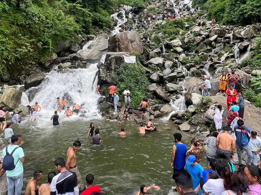 मैलुङ्ग झरनामा खचाखच भरिए आन्तरिक पर्यटक