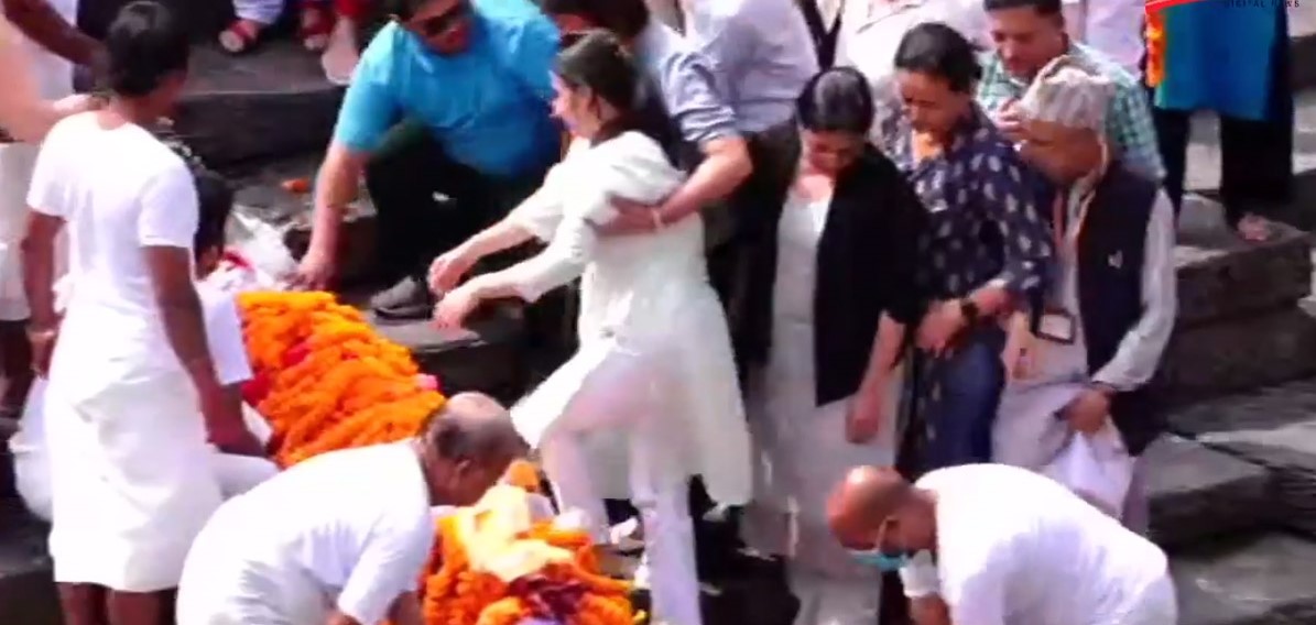 दाहालको पार्थिव शरीर अन्त्येष्टिका लागि आर्यघाटमा