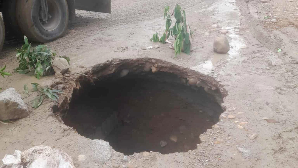 दाउन्ने विश्वकर्मा मन्दिर नजिकै सडकमा भ्वाङ पर्यो