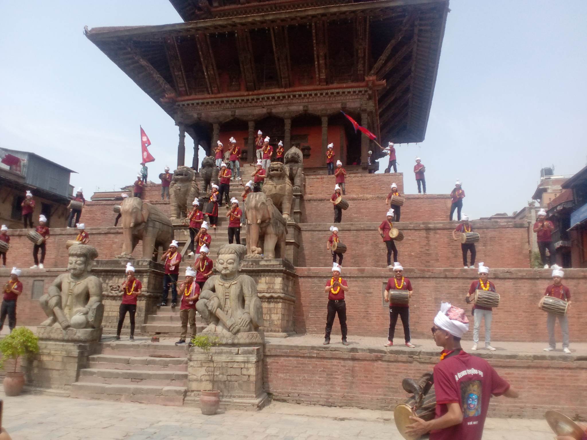 पाँचतल्ले मन्दिरमा कर खिं बाजा बजाई प्रदर्शन