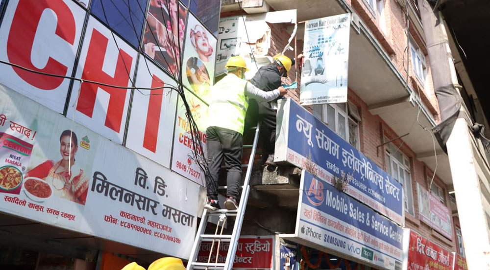 काठमाडौँ महानगरले तीन महिनामा हटायो नौ हजार होर्डिङ बोर्ड