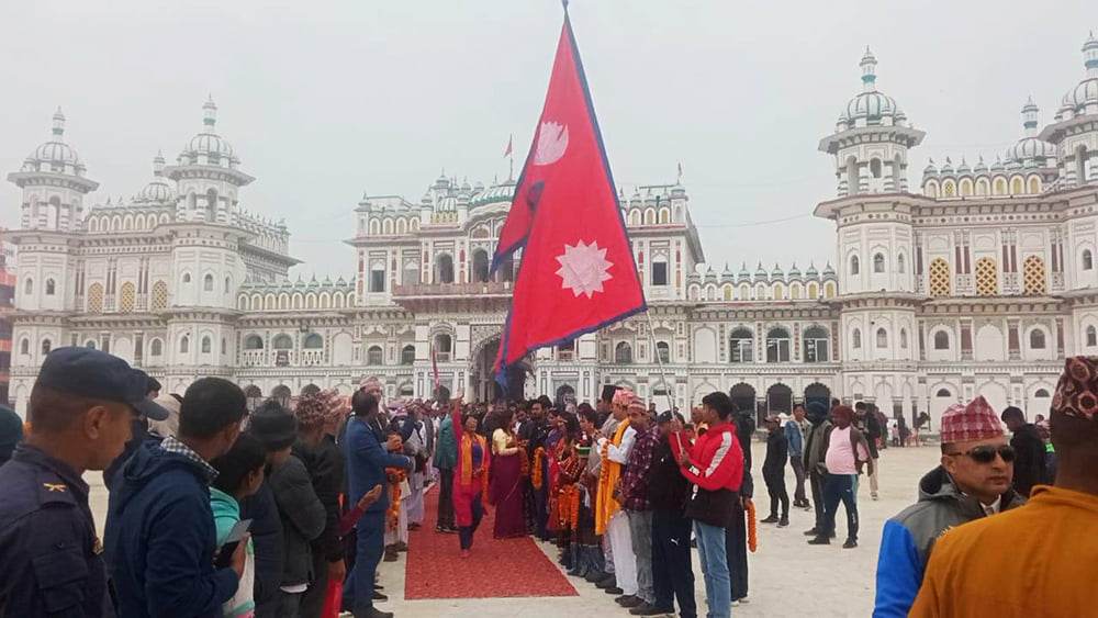 दर्शनका लागि जानकी मन्दिर पुगेका ज्ञानेन्द्रलाई समर्थको नाराः राजा आऊ देश बचाउँ