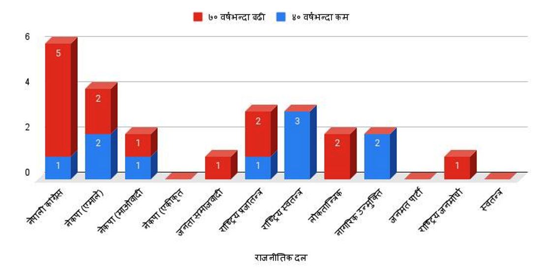 यी हुन् ४० वर्षमुनिका १० र ७० माथिका १४ सांसद