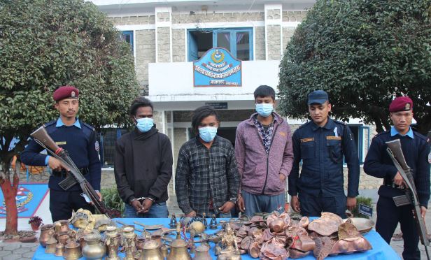 मन्दिरबाट मूर्तिसहितका धातु चोरी गर्ने तीन जना पक्राउ