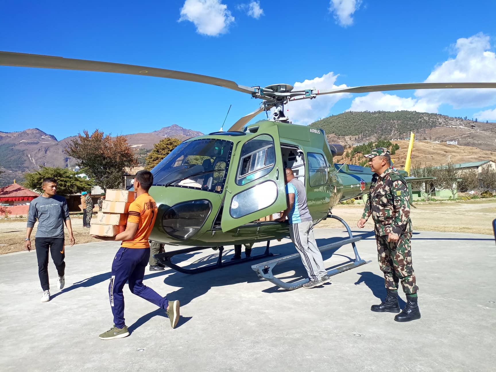निर्वाचनका लागि जुम्लामा सेनाको हेलिकोप्टरमार्फत् मतपत्र ल्याइँदै