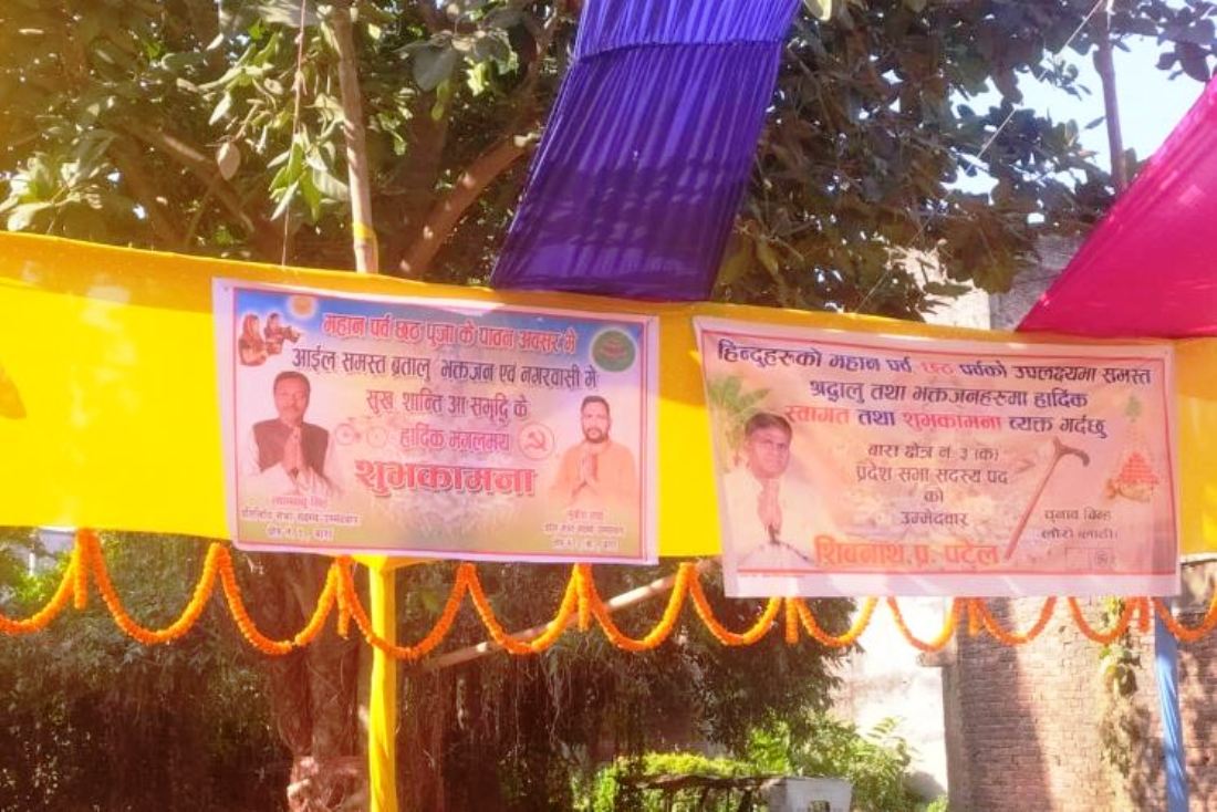 आचारसंहिताविपरीत छठ घाटमा चुनावी ब्यानर