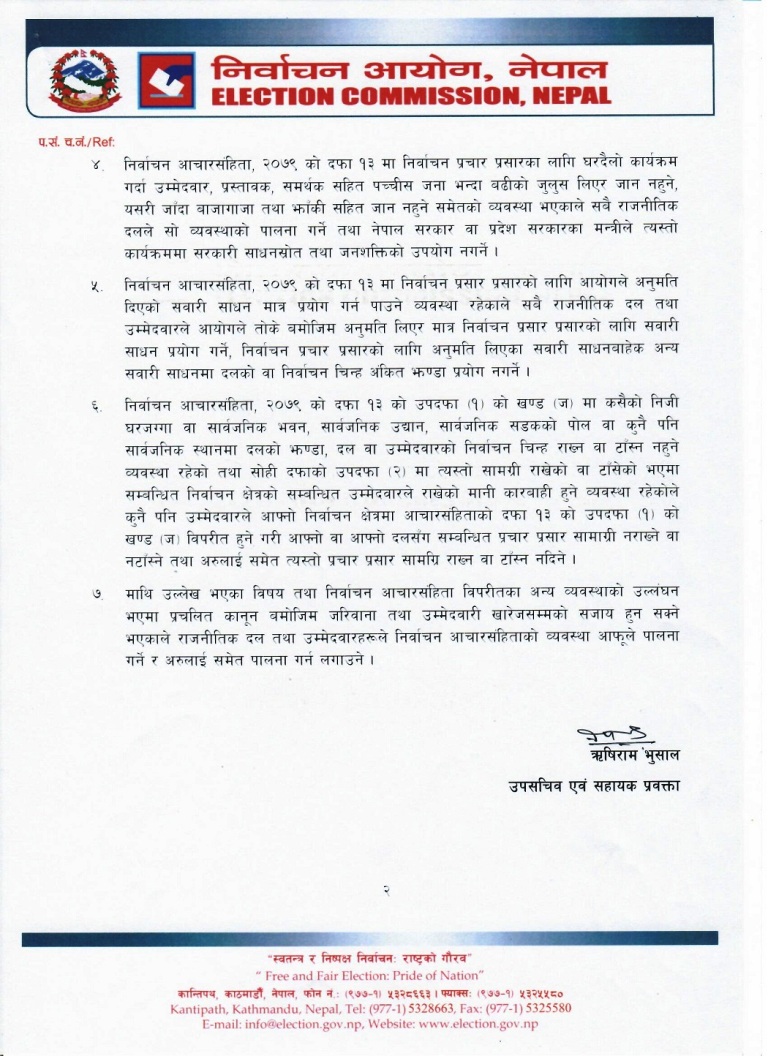आजबाट लागू भयो निर्वाचन आचारसंहिता