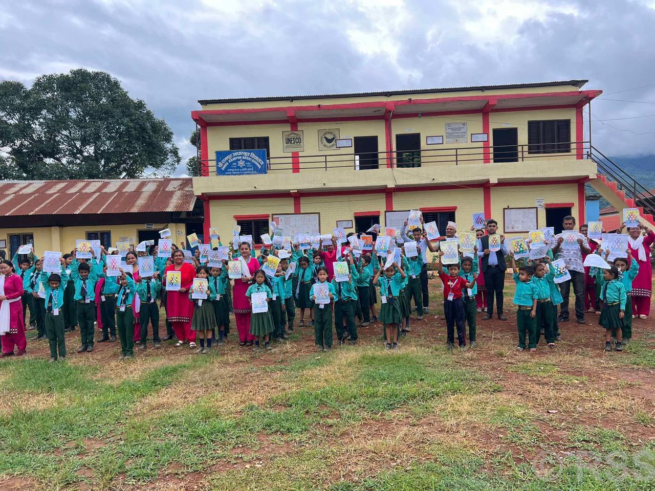 विद्यार्थीले तयार पारेका नागको चित्र टाँस्दै मटेरीवासी