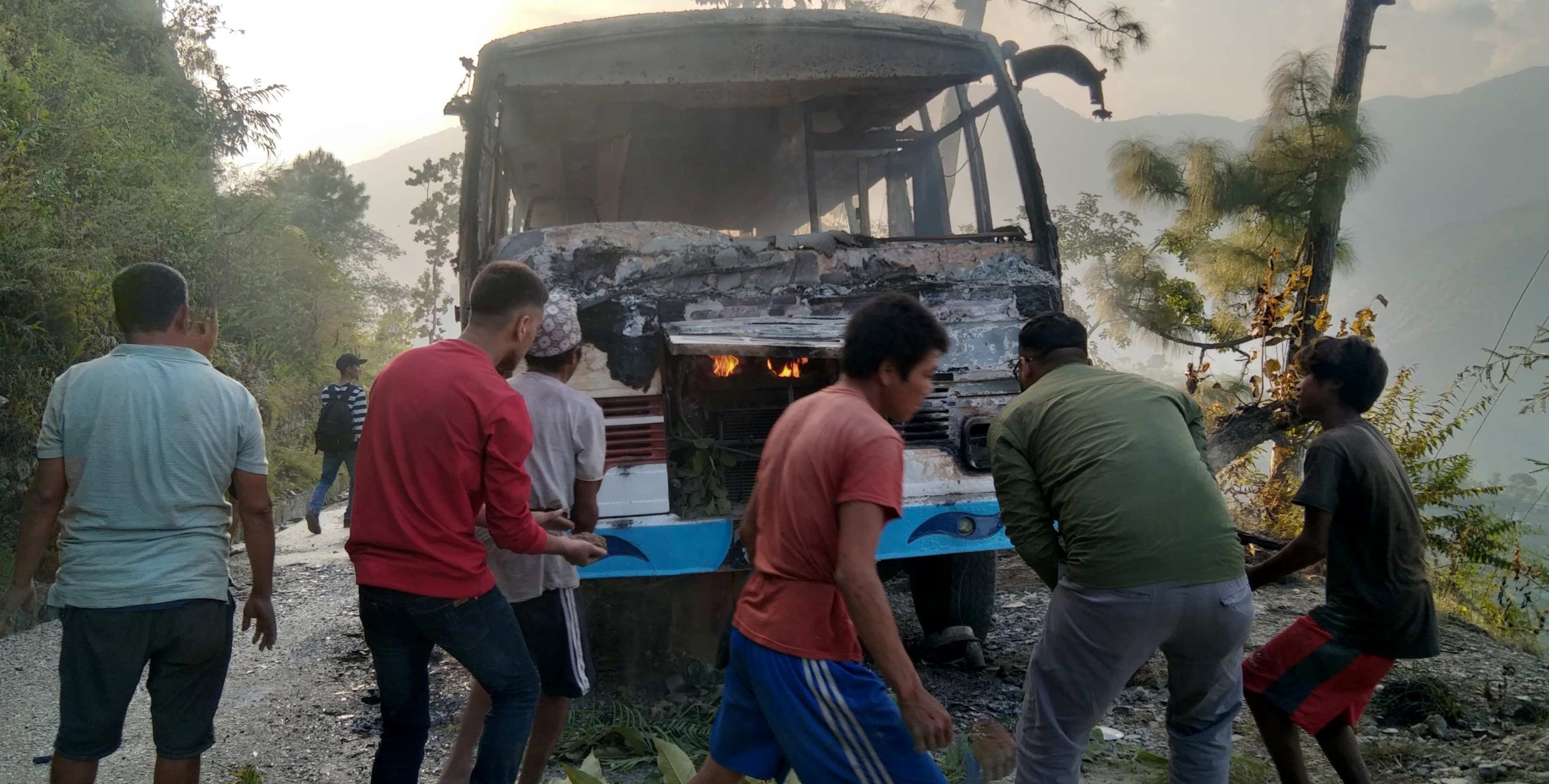 गुडिरहेको बसमा आगलागी