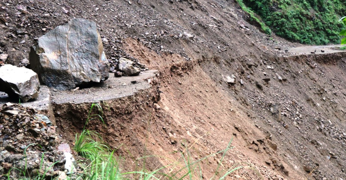 बेनी–दरवाङ सडकखण्डको १० मीटर सडक पहिरोले बगायो