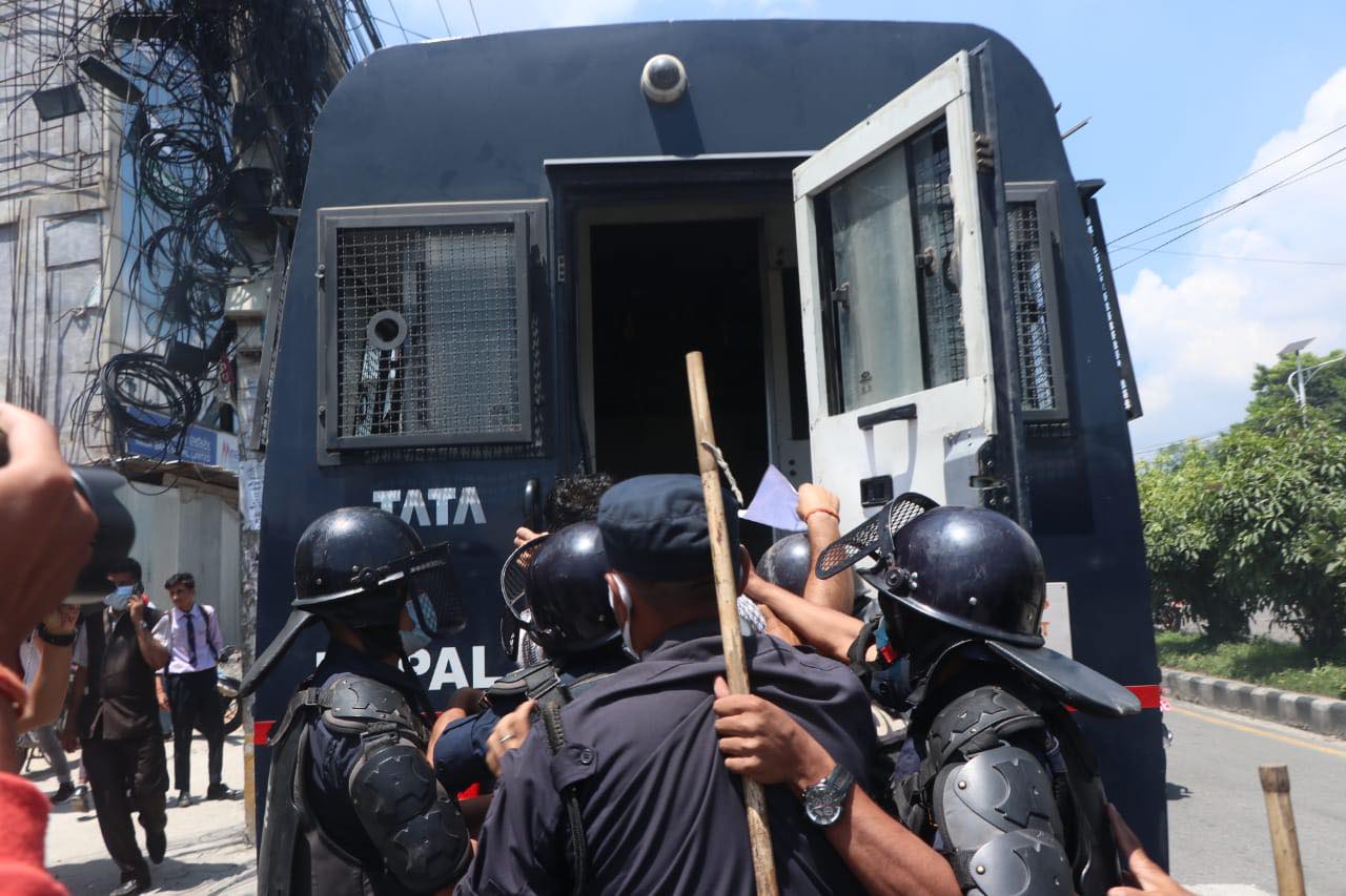 नागरिकता विधेयकको विरोधमा संसद् भवन अगाडि प्रदर्शन, प्रहरीको हस्तक्षेप