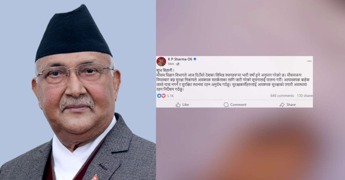 प्रधानमन्त्रीको अपिल- भारी वर्षाको सम्भावना भएकाले अत्यावश्यक बाहेक लामो यात्रा नगरौँ