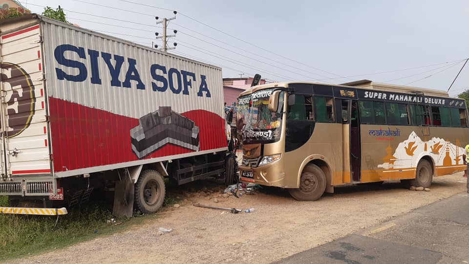 दाङमा रोकी राखेको ट्रकमा बस ठोक्किँदा ८ जना घाइते
