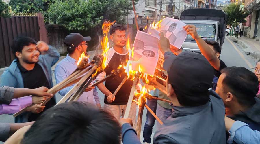 सिंहदरबार नजिकै प्रधानमन्त्री र शिक्षामन्त्रीको पुत्ला दहन