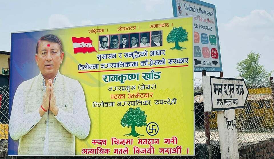 सार्वजनिक स्थानमा कांग्रेस उम्मेदवारको प्रचार सामग्री
