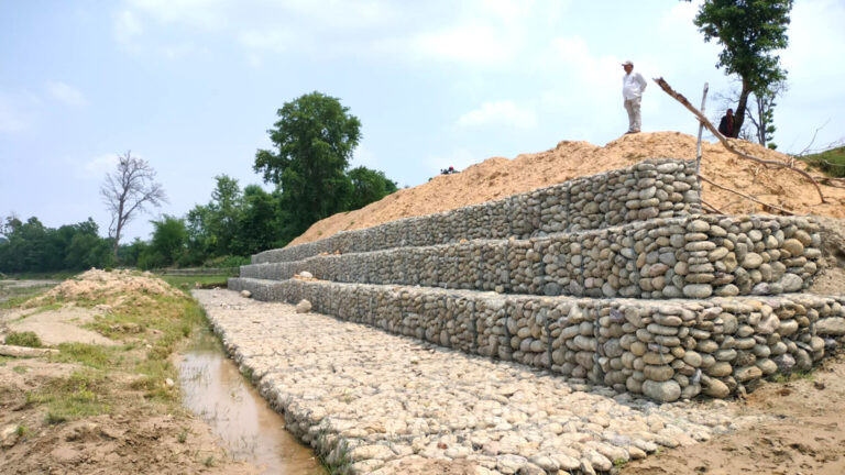 बाँकेमा बाढीबाट बस्ती जोगाउन अस्थायी तटबन्ध