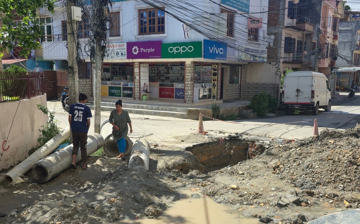 महानगरमै यस्तो हाल : पानी पर्दा बाटोमै खोला, त्यसमाथि असारे विकास