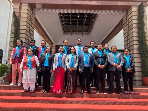निलो टाई लगाएर रास्वपा सांसद संसद भवनमा