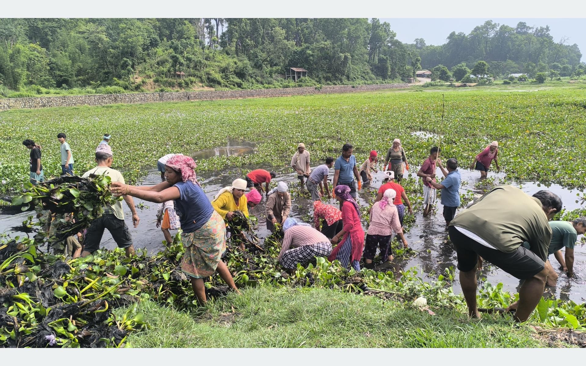कावासोतीको टरुवा ताल संरक्षणका लागि जलकुम्भी हटाइँदै
