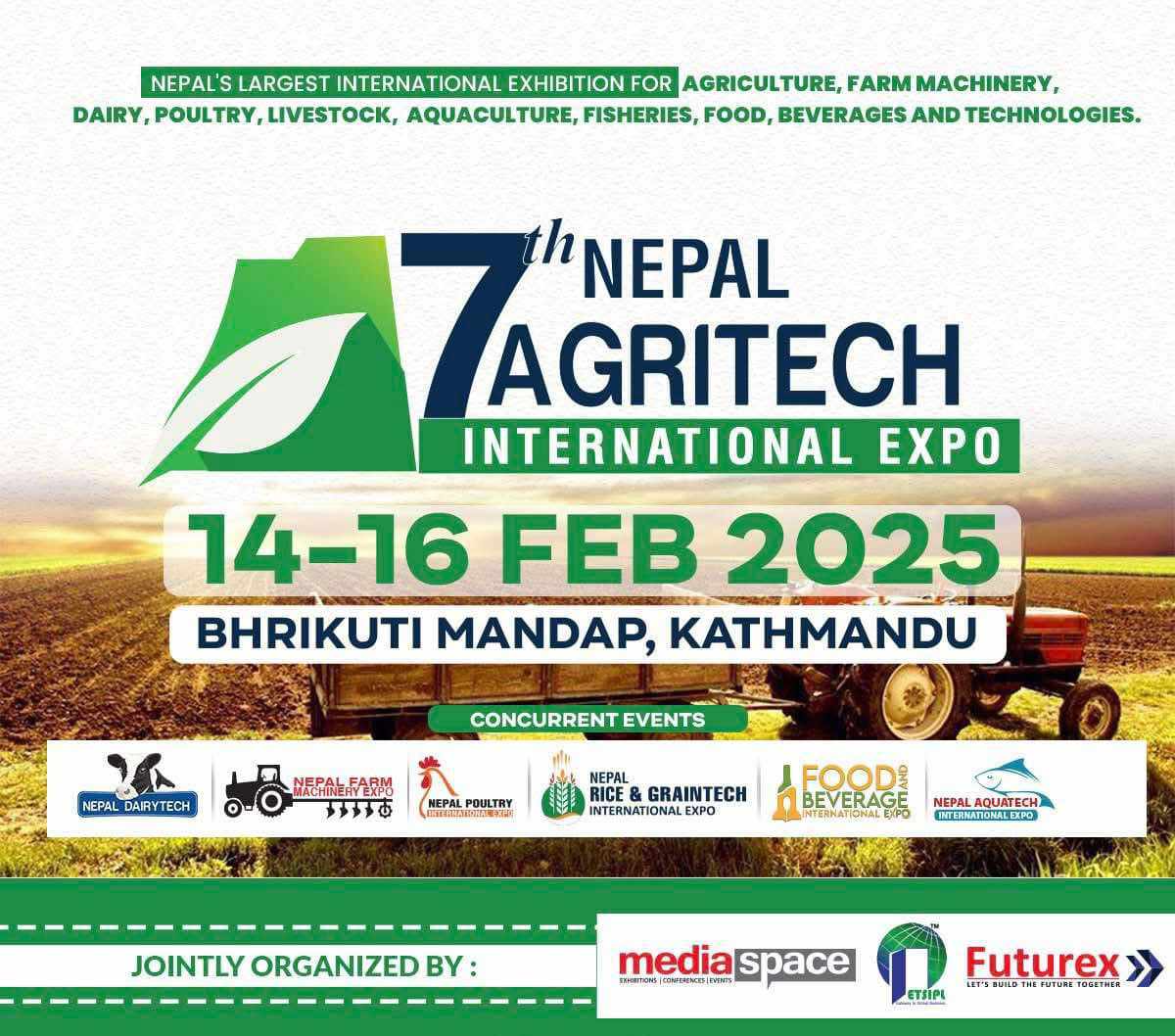 फागुन २ गतेदेखि ४ गतेसम्म काठमाडौंको भृकुटीमण्डपमा ‘सातौं नेपाल एग्रीटेक इन्टरनेशनल एक्स्पो’ हुँदै