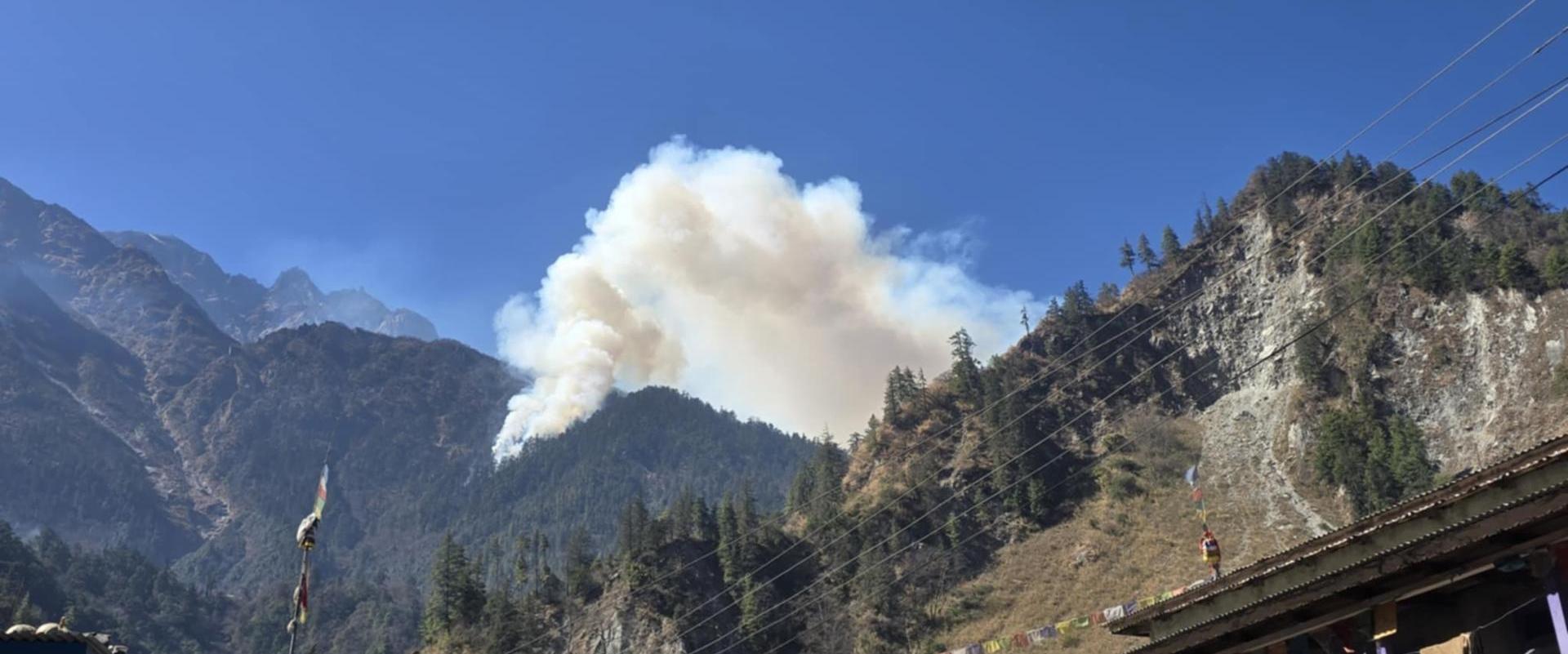 तिमाङको जङ्गलमा लागेको आगो अझै निभाउन सकिएन