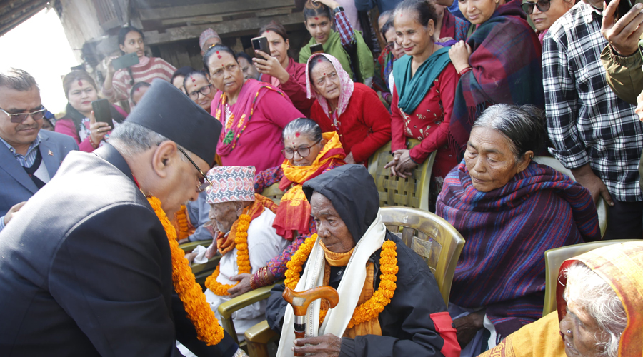 मोरङको ग्रामथानमा प्रचण्डले गरे ज्येष्ठ नागरिकको सम्मान