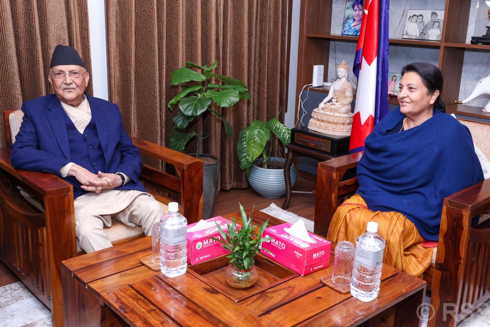 प्रधानमन्त्री ओली र पूर्वराष्ट्रपति भण्डारीबीच भेट