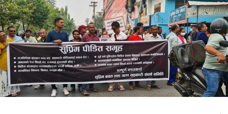 भैरहवामा रविको बयान चलिरहँदा बाहिर सुप्रिम सहकारी पीडितको प्रदर्शन