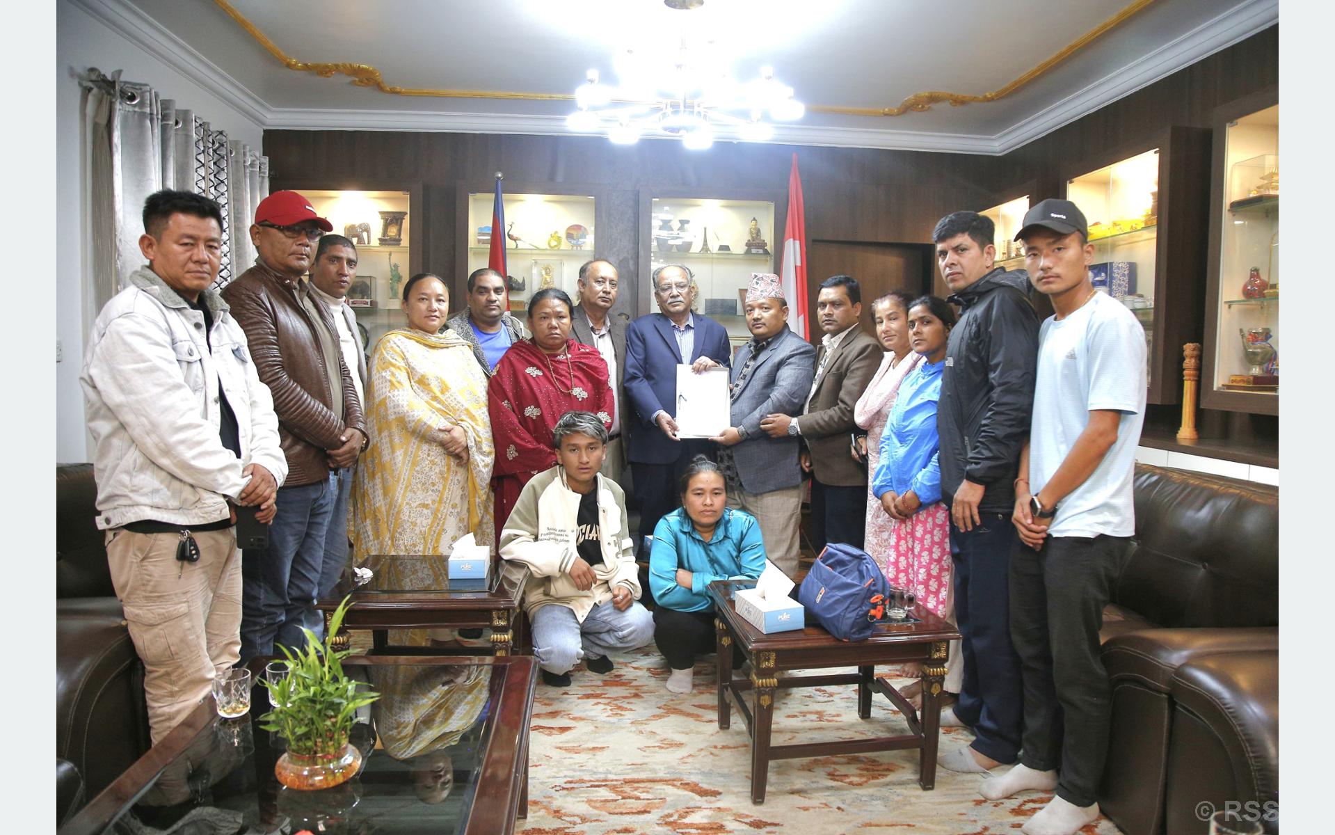 बाल खेलाडी पुरिएर मृत्यु भएको घटना छानबिनका लागि पहल गर्ने अध्यक्ष दाहालको प्रतिबद्धता