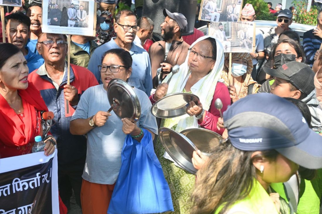 पोखरामा रित्तो थाल बोकेर सहकारीपीडित सडकमा
