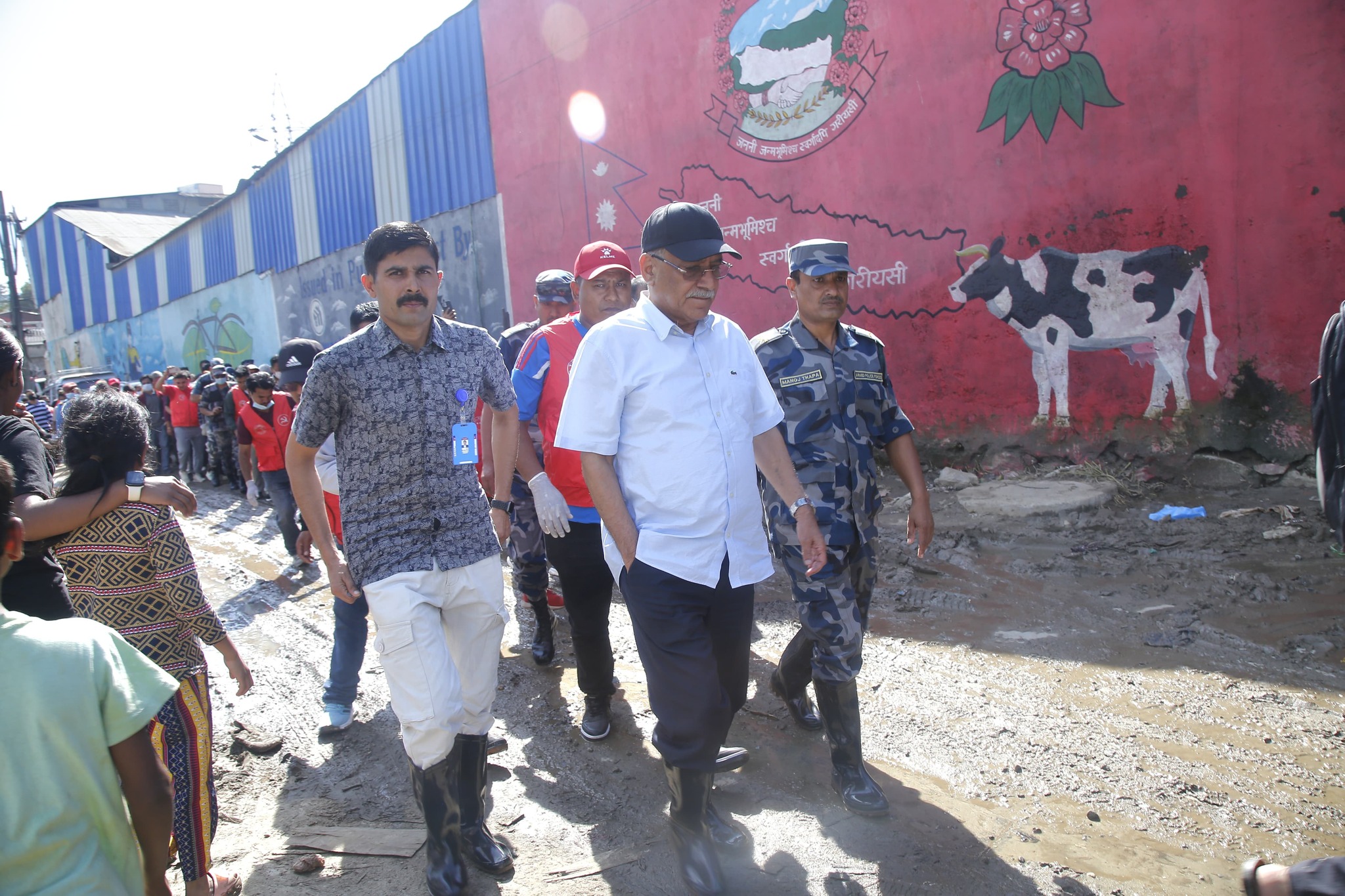 बाढीपीडितहरूलाई भेट्न बल्खु पुगे प्रचण्ड