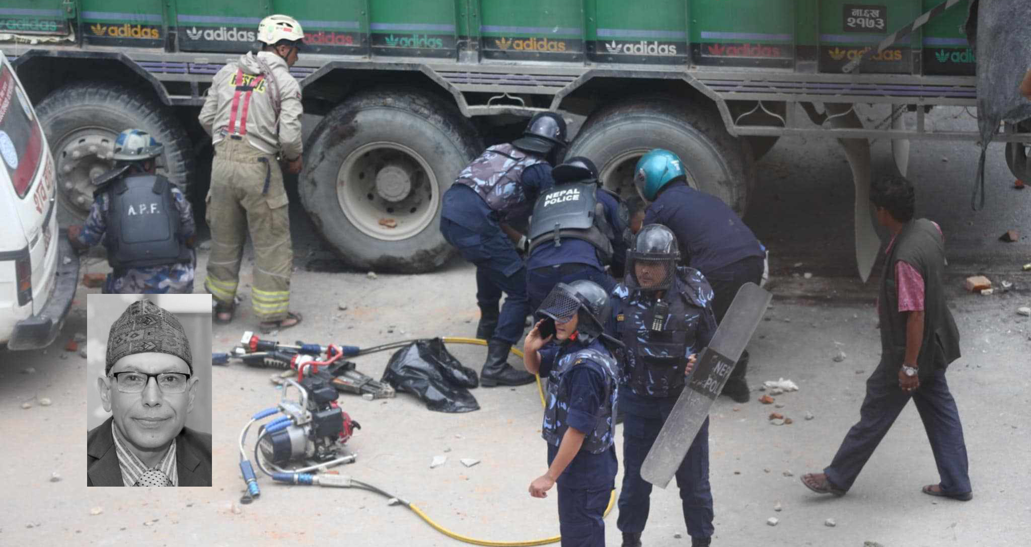 ट्रकले यसरी लछार्दै लगेको थियो गट्ठाघरमा स्कुटर