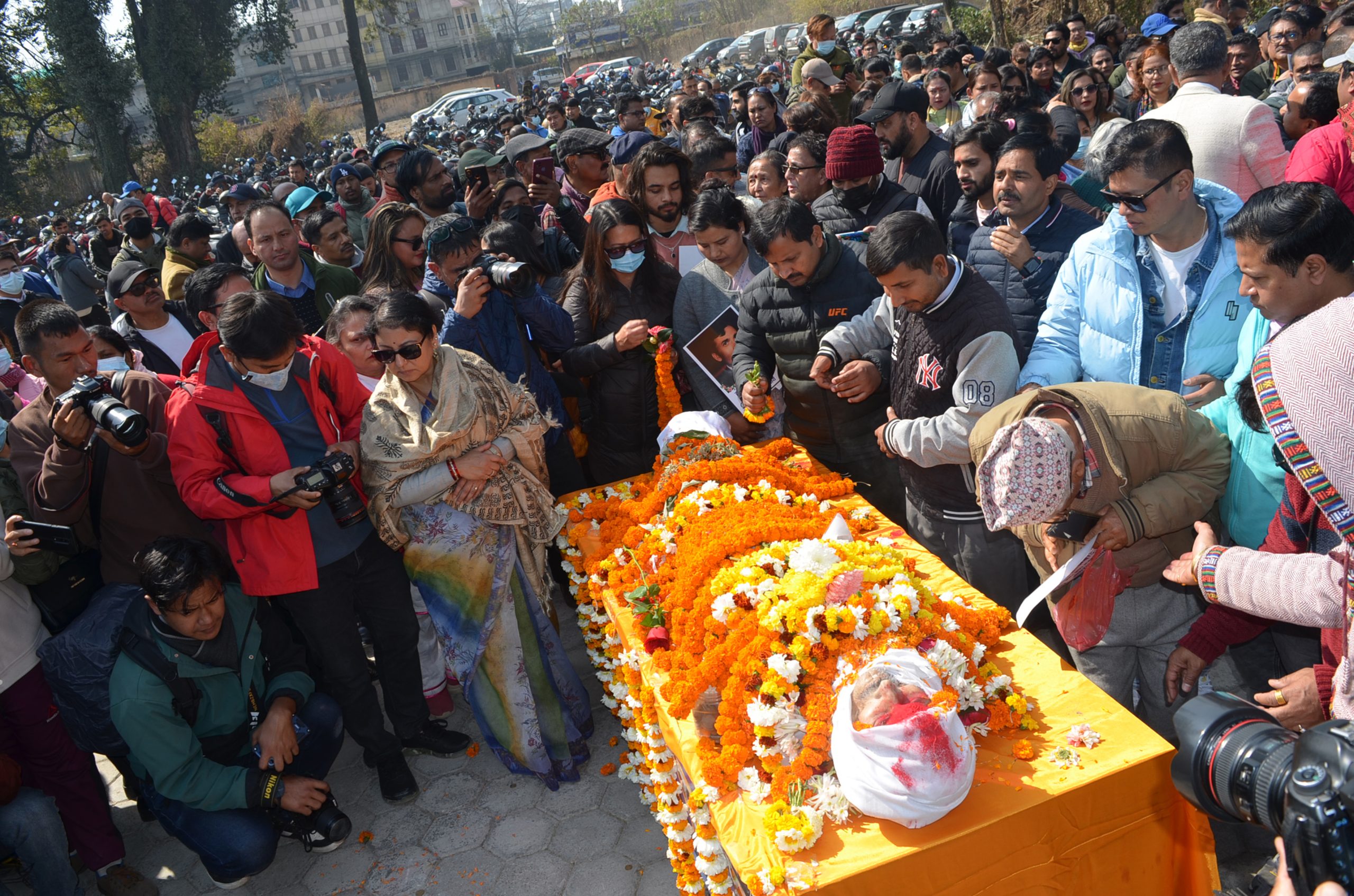 प्रतिष्ठान परिसरमा गायक तथा सङ्गीतकार आचार्यप्रति श्रद्धाञ्जलि अर्पण गरिँदै