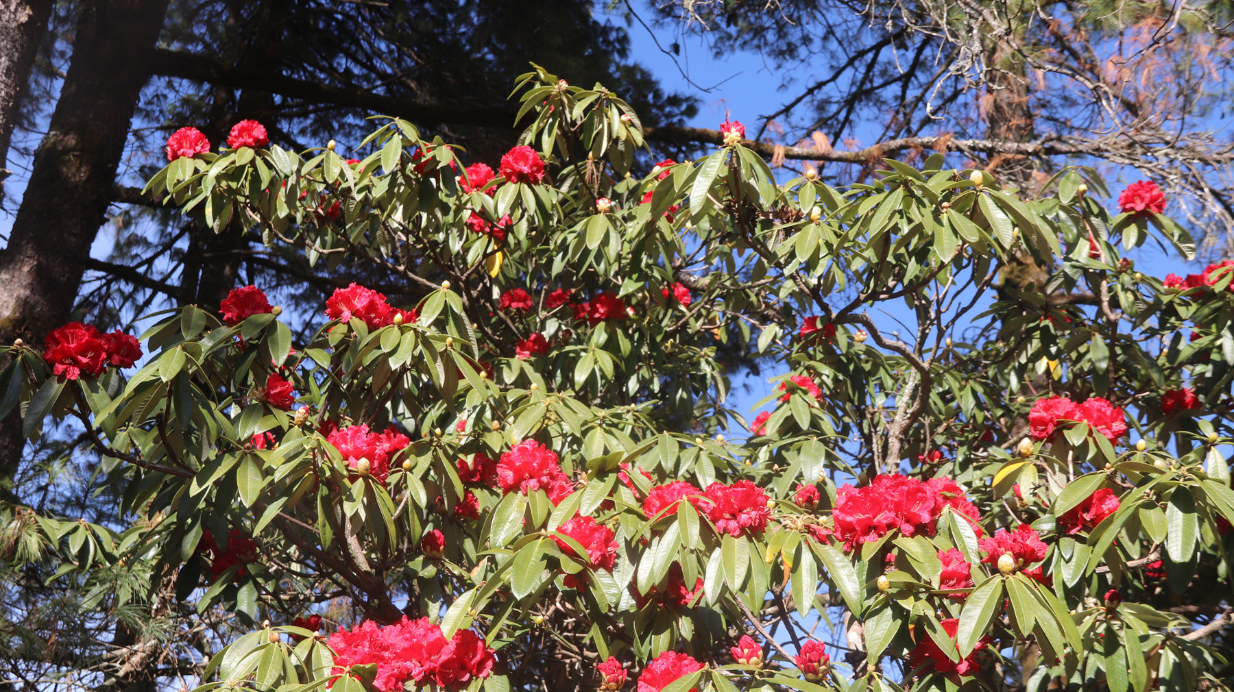 चैत–वैशाखमा फुल्ने लालीगुराँस माघमै फुल्यो