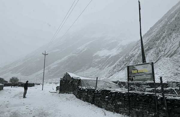 उत्तरी गोरखामा हिमपात, मनास्लु भ्रमणमा गएका पर्यटक प्रभावित