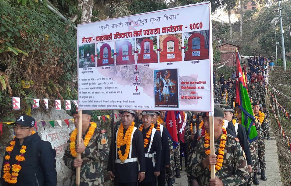 नेपाली सेनाको गोरखाबाट एकीकरण पदयात्रा सुरु