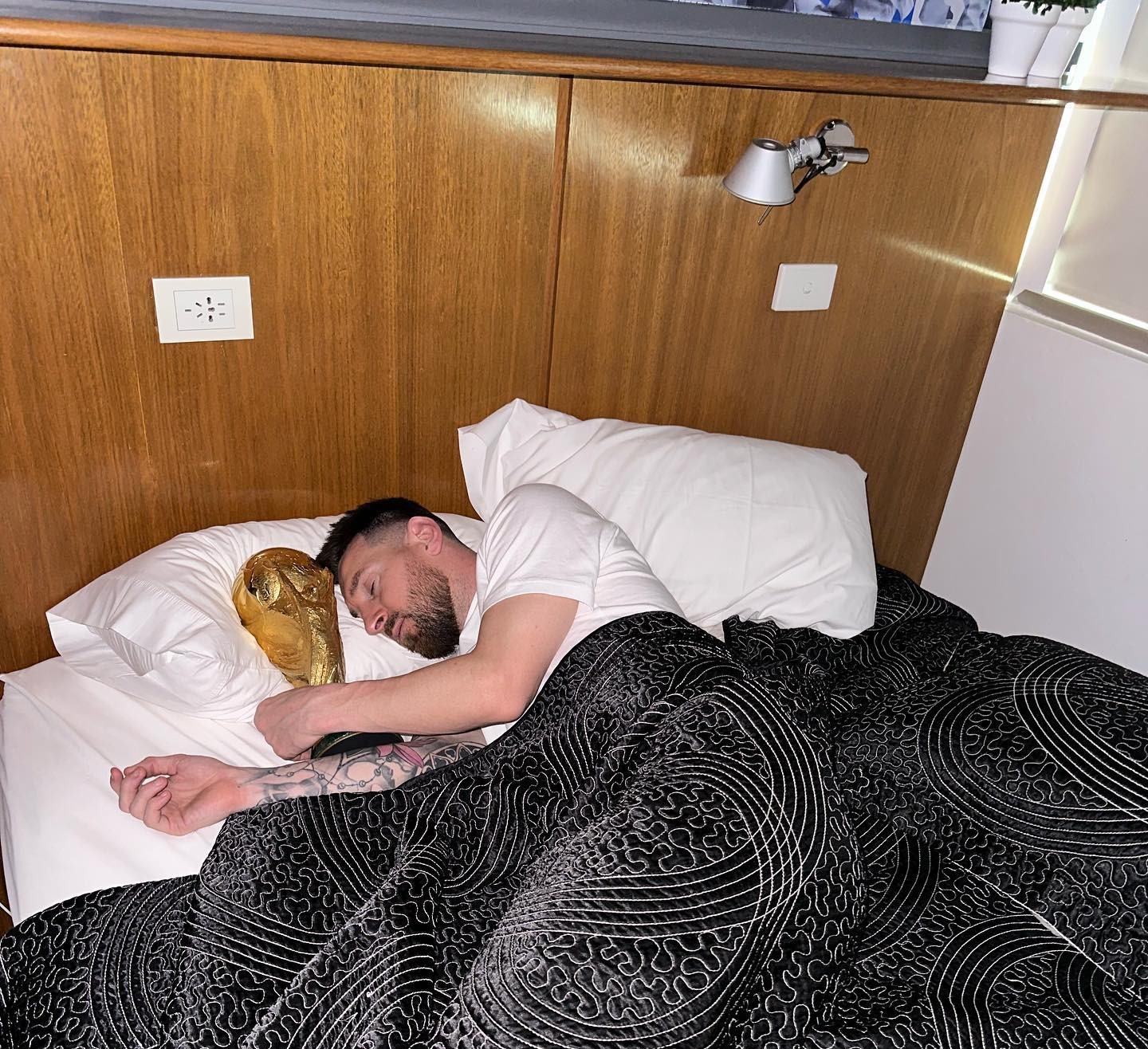 मेसीले विश्वकप ट्रफीसँगै सुतेको तस्बिर सार्वजनिक गरे