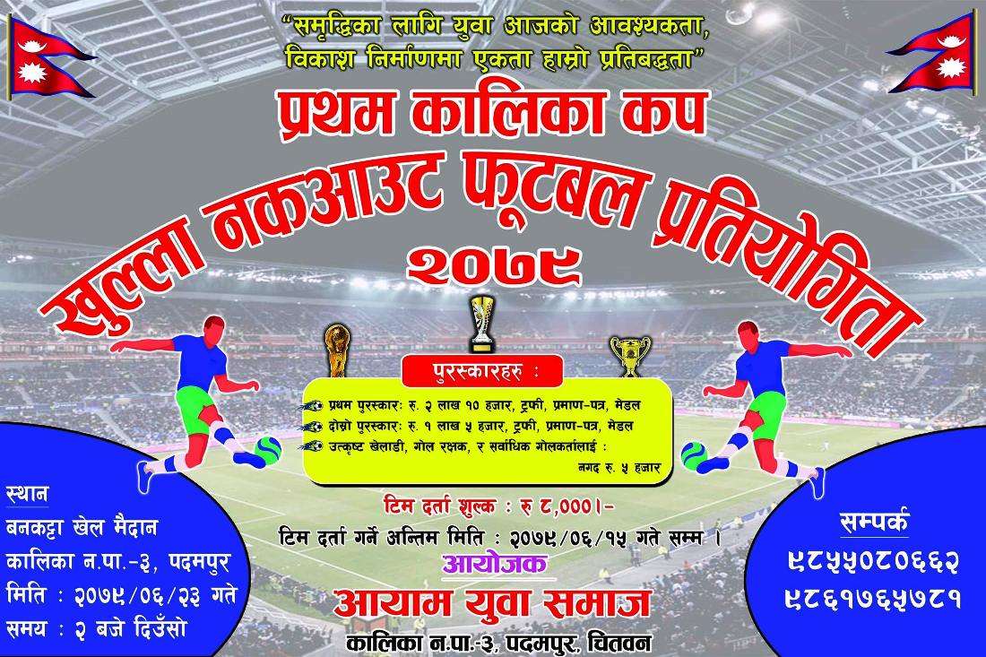 प्रथम कालिका कप खुल्ला नकआउट फुटबल प्रतियोगिता सर्यो, दर्ता समय थप