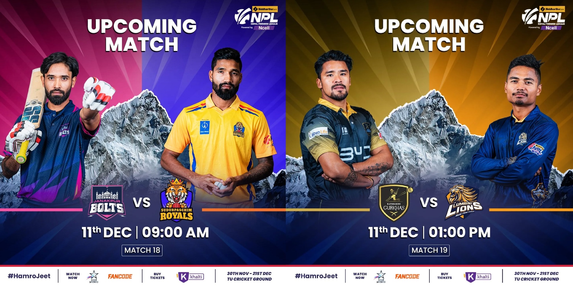 एनपीएलमा आज जनकपुर र सुदुरपश्चिम, काठमाडौँ र लुम्बिनी भिड्दै