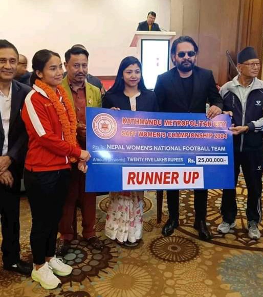 साफको उपविजेता नेपाली महिला टोलीलाई काठमाडौं महानगरको २५ लाख