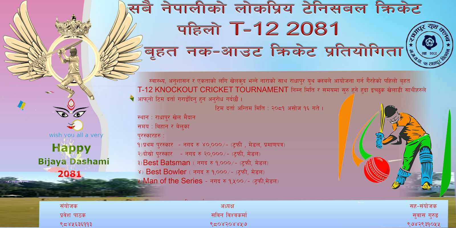 राधापुर युथ क्लबको आयोजनामा “रामजी कंडेल T-12 क्रिकेट प्रतियोगिता” हुने