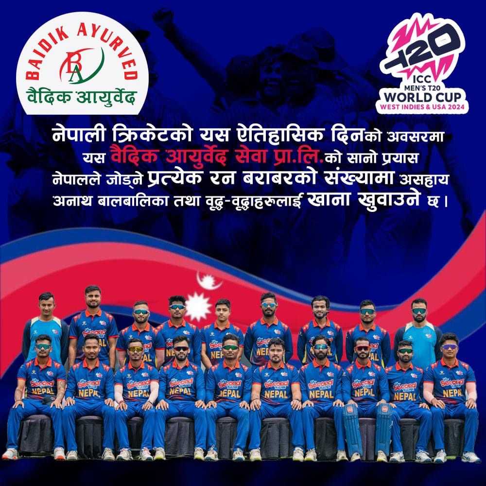 विश्वकप क्रिकेट: वैदिक आयुर्बेदले नेपालको प्रत्येक रनमा असाहय,जेष्ठ नागरिकलाई खाना खुवाउने