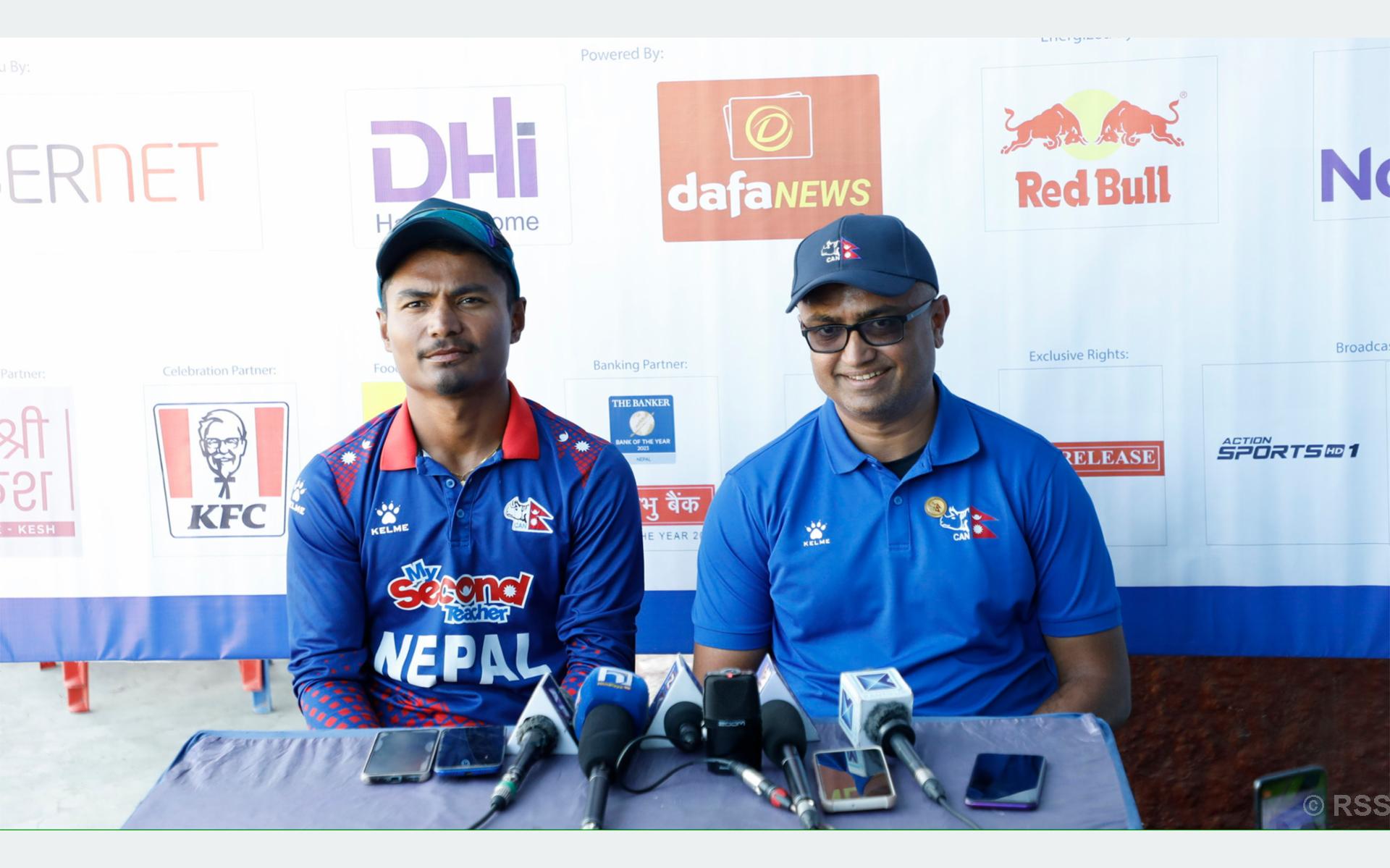नेपालले टस जितेर नेदरल्यान्ड्सविरुद्ध ब्याटिङ गर्दै