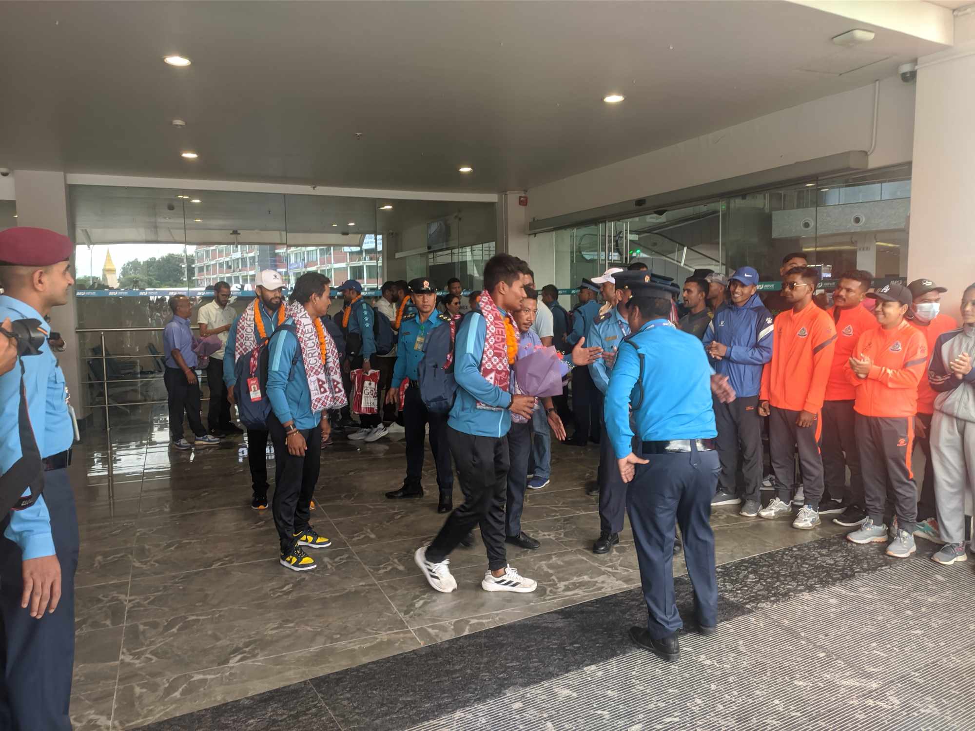 एसिया कप खेलेर स्वदेश फर्किएको नेपाली क्रिकेट टोलीलाई विमानस्थलमा भव्य स्वागत